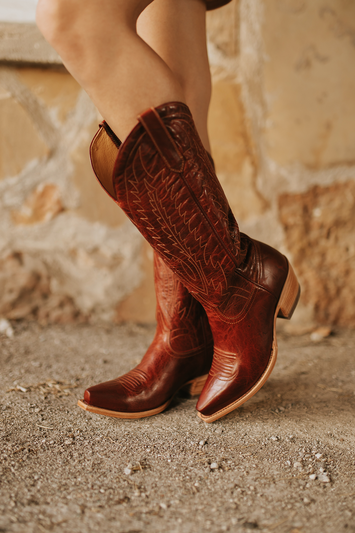 Every cowgirl needs a pair of red boots in her closet, and you can't go wrong with the Victoria. This boot features a flattering 15" shaft height, 1.75" western heel, and a snip toe for a sleek finish. The ultra-modern CellSole® cushioned footbed and soft leather lining provide cloud-like comfort for all day wear. Whether you're heading to a concert, rodeo, or dinner with friends, the Victoria boot is sure to be a wardrobe staple.